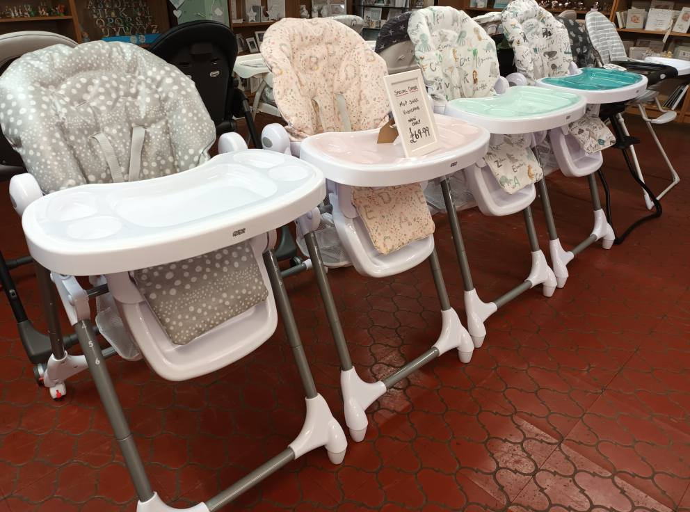 High chairs, Cots, Playgyms, Walkers, Bibs, Clothing, Cribs and so much more. Visit us and let us take out the guess work.